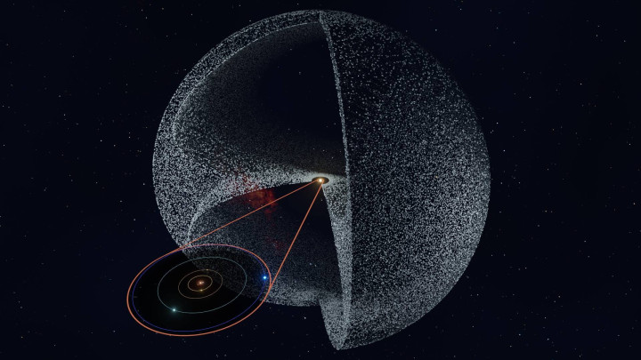 这个由数十亿甚至数万亿个古老冰质天体组成的壳层,被认为是太阳系的最外层边界,这就是奥尔特云。